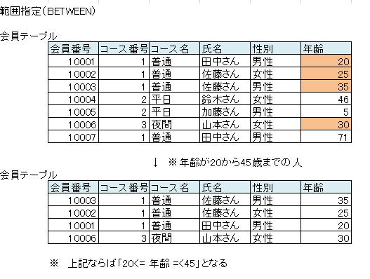 範囲指定(BETWEEN)